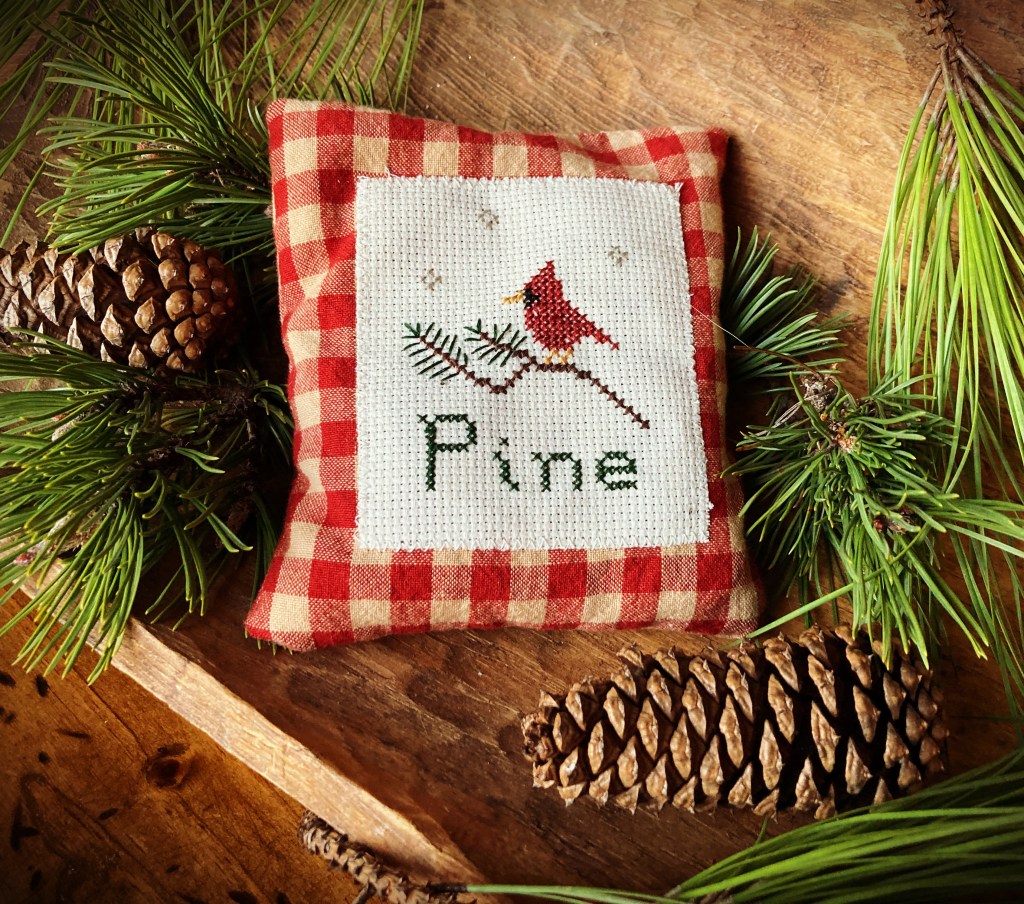 My contribution to the winter 2021 issue is this cross stitch pattern called “Cardinal & Pine Sachet”, which also includes information on making your own pine needle sachet. The pattern is very versatile– you can make the sachet as shown with the cross stitch design, or you can make your own sachet— OR you can just stitch the cardinal and ‘frame’ it within a hoop as a piece of art! There are so many ways to use this pattern.