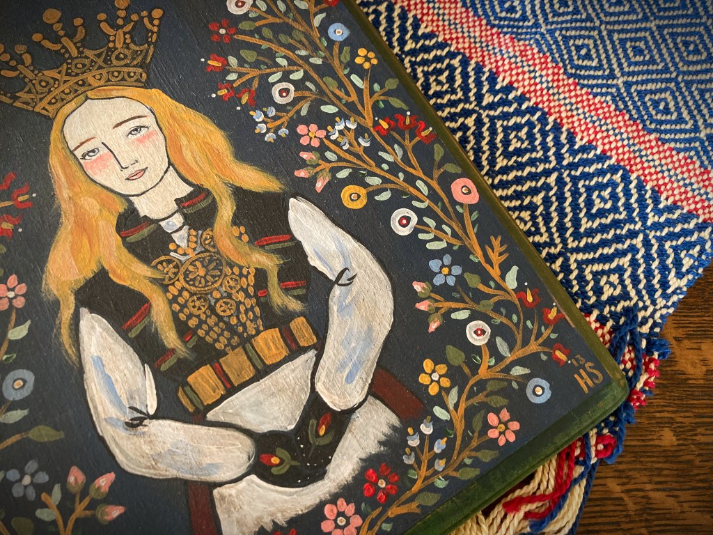 I thought it might be fun to read it and chat together about it, what do you think? I also think it’s a great inspiration for some sketching. I’ve actually done a portrait of Kristin Lavransdatter as a custom piece in the past, and many years ago I painted a Norwegian Bride– shown below: