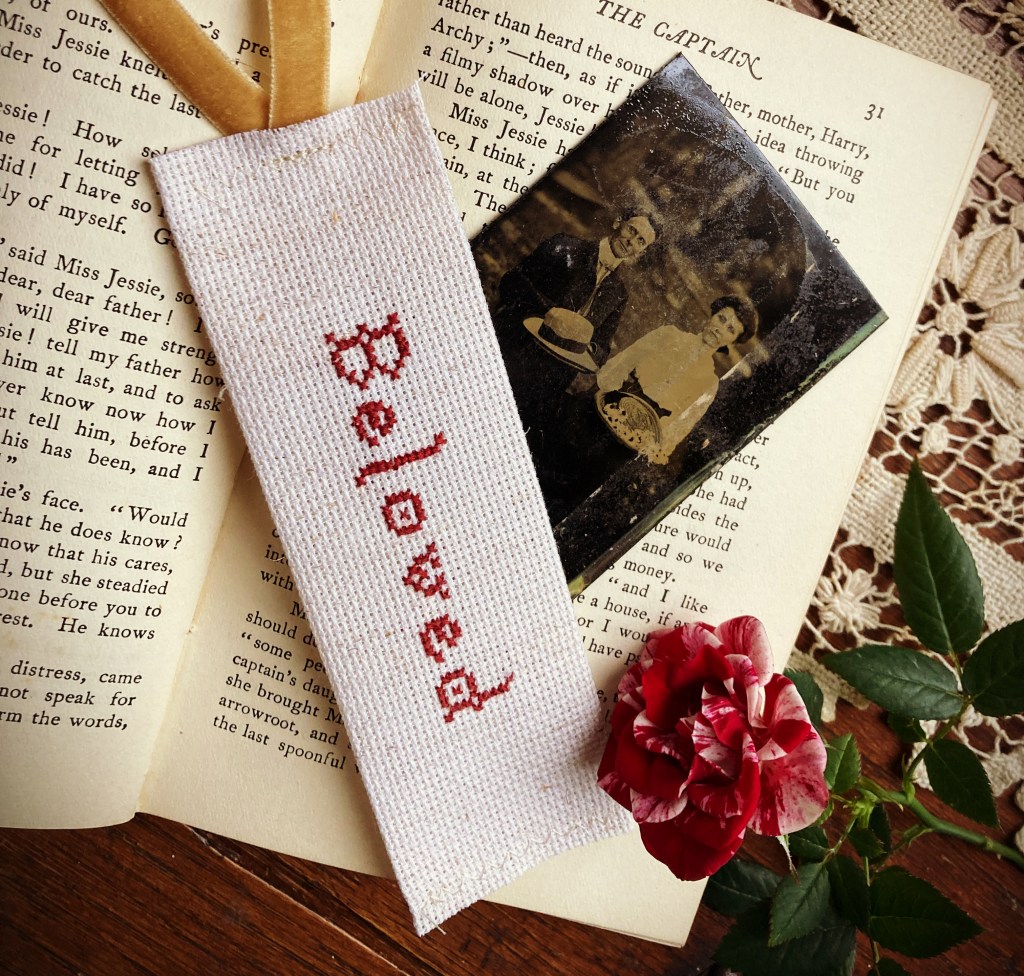 I hope you are warm and well! It’s amazing that we’re already half way through January, and St. Valentine’s Day is just around the corner! In honor of that special day of love, I’ve created a new FREE pattern for you to create– a stitching chart with the word ‘beloved’ that you can use to adorn a gift, add to a patch, or use as a bookmark, like shown here on this post!