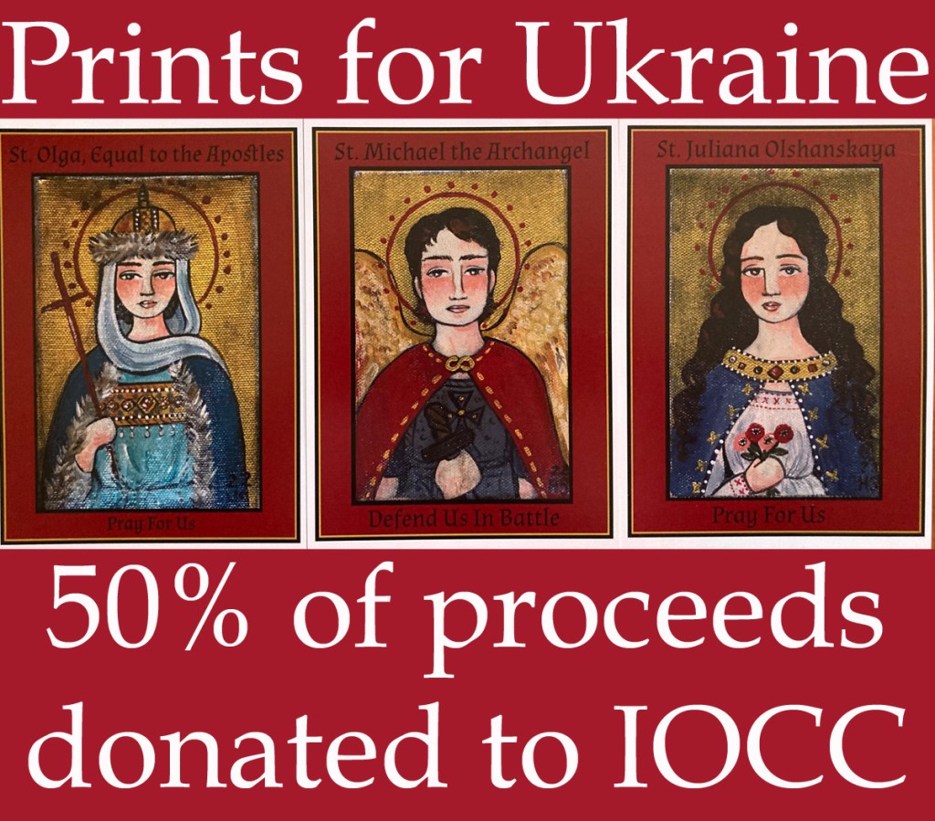 By popular demand, I’ve made prints of the three saint paintings I created to raise funds for Ukraine. 50% of the price of the print ($4 of the $8 print price) for the 5×7″ prints.