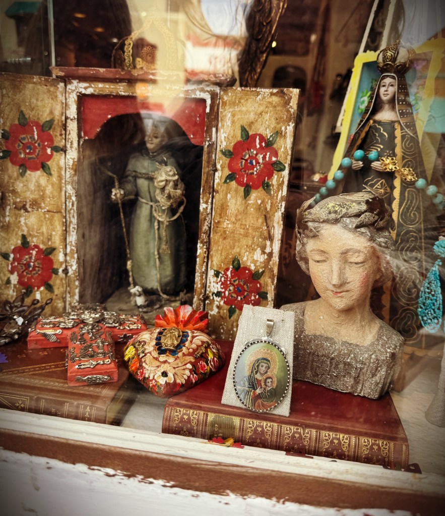One of the many things I loved about Santa Fe was how steeped it is in both its Native American and Catholic culture. There were santos and miligros, icons and little blessed objects around every corner! I particularly love the unique folk art style of New Mexican religious art, and seeing so many beautiful pieces made my heart absolutely ache from the beauty of it.