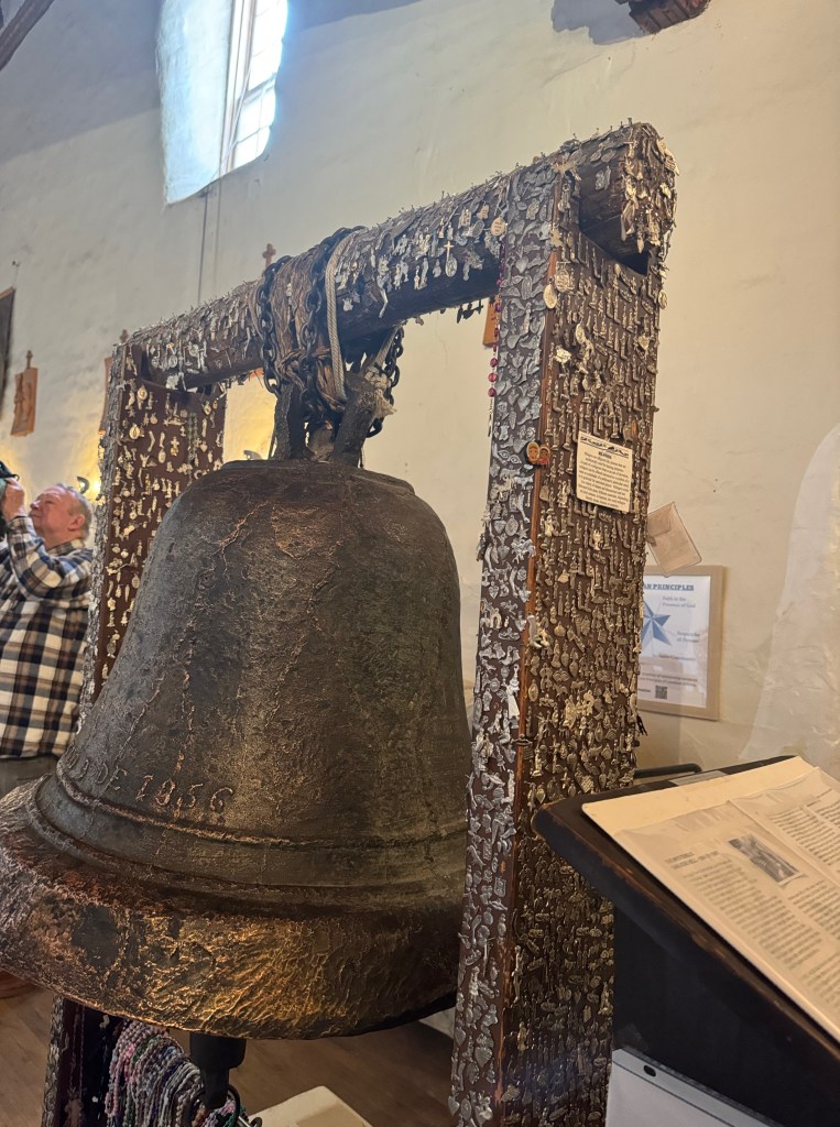 While this story is amazing, historians have questioned its truthfulness because the date cast onto the bell is written in the way Americans write (month/date/year) and NOT how it would have been written in Europe (day/month/year.) Either way, the bell is beautiful and has such a warm, lovely tone (visitors are allowed to ring it!) and all the little miligros, which symbolizes prayers and petitions of hundreds of people, is moving to see.