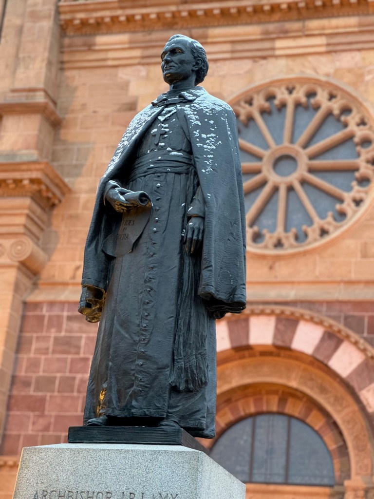 In the midst of Santa Fe’s Old Town, the St. Francis of Assisi Cathedral Basilica reigns. Outside, there is a beautiful statue of Archbishop Lamy, the inspiration for Bishop LaTour in Cather’s classic novel “Death Comes for the Archbishop.” He was a French priest who traveled to the desert Southwest to become the area’s first bishop and became a bit of a legend in his own time.