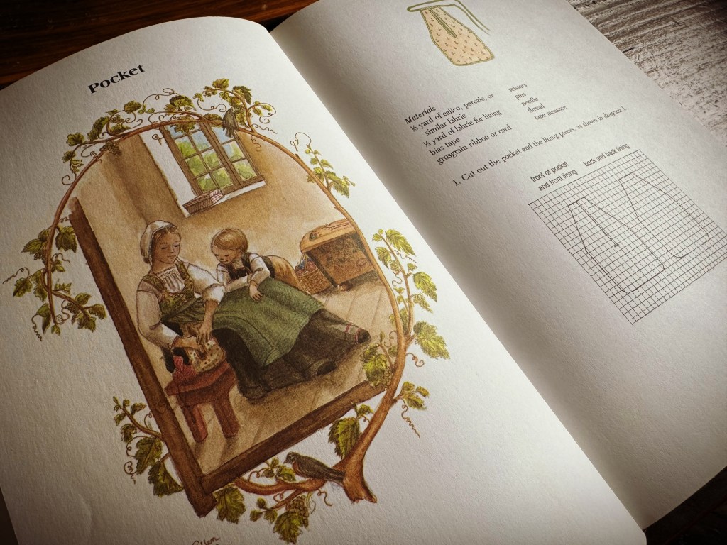A few weeks ago we did a seed exchange from our gardens, and in the package she sent was this beautiful handsewn pocket! She got the pattern out of the book “Tasha Tudor’s Old Fashioned Gifts” by Tasha Tudor and Linda Allen and it is just beautiful!